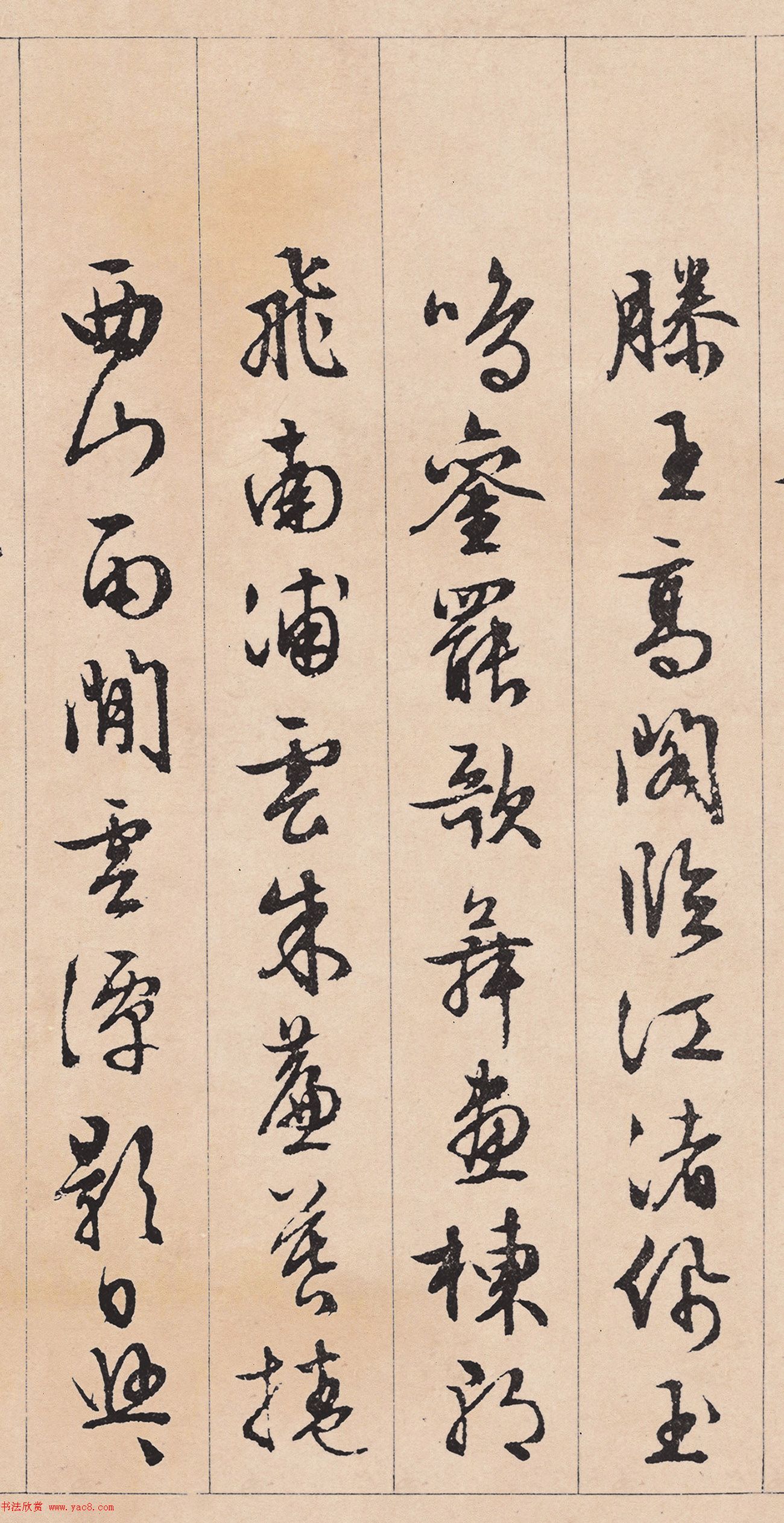 文徵明行草书《滕王阁序》(5) 2022/9/28 作者:书法欣赏 来源:www.yac8.com 阅读:62975 滕王高阁临江渚,佩玉鸣鸾罢歌舞。画栋朝飞南浦云,朱帘暮卷西山雨。闲云潭影日悠悠,物换星移几度秋。阁中帝子今何在?槛外长江空自流。徵明。 上一页跳页下一页该文章所属专题:文徵明书法 上一条 赵孟頫行草书《雪睛云散帖》 下一条 文徵明行书五言律诗轴《岁暮天欲雪》