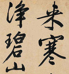 劉墉行書詩卷,水墨紙本,来源:香港苏富比拍卖。 周澄題簽:劉石蓭行書手卷。壬辰(2012)夏日周澄。歐豪年題簽:劉石蓭行書詩卷,丁丑(1997)豪年觀餘題。 此件劉墉所作行書詩卷書於乾隆五十九年(1794)二月,劉墉時任吏部尚書。內容節錄六篇詩作,用墨厚重,剛柔並濟,自信沉穩的筆...