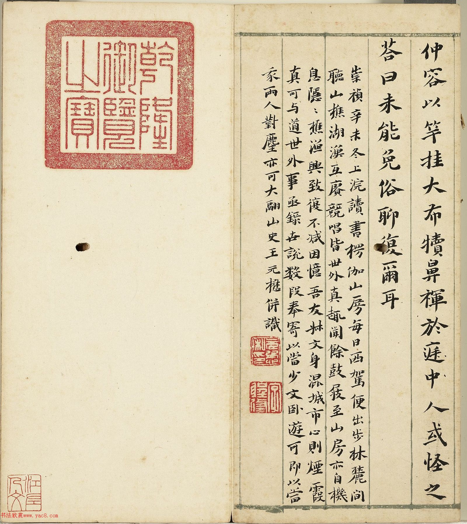 明代王元懋楷书《节书世说新语》册(2) 2023/6/5 作者:书法欣赏 来源:www.yac8.com 阅读:2217 崇祯辛未冬上浣读书楞伽山房每日西驾便出步林麓间听山樵湖渔互赓竞唱皆世外真趣闻余鼓屐至山房亦自机息隐隐樵渔兴致复不减因忆吾友叔文身混城市心则烟霞真可与道世外事亟录世说数段奉寄以当少文卧游可即以当我两人对麈亦可大翮山史王元懋并识 上一页跳页下一页 上一条 清代姚文田楷书御制诗八首 下一条 明人金字楷书《佛顶心大陀罗尼经》册